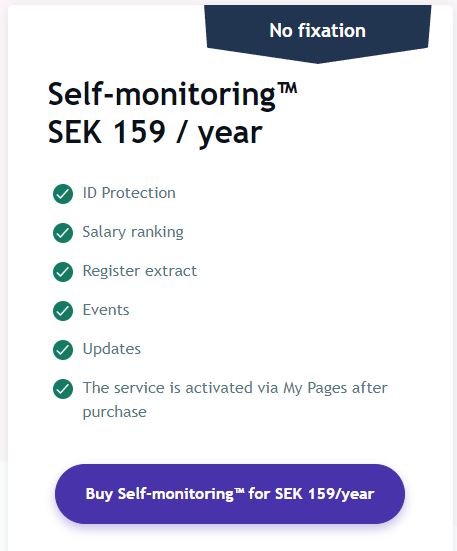2. Aktivera Självbevakning: Välj Självbevakning som tjänst. Du kan behöva betala en månads- eller årsavgift beroende på vilken typ av bevakning du väljer.