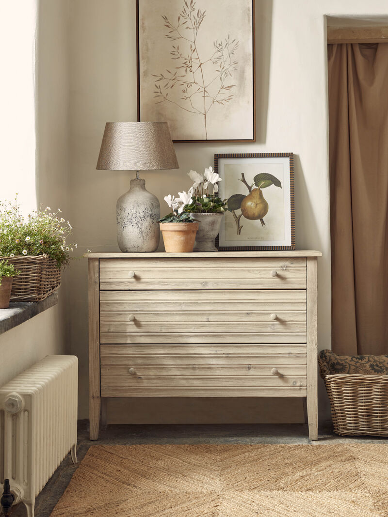 Welcome guests with a console table dressed in organic ceramics and a statement mirror. Add a touch of greenery in a textured pot for life and movement.