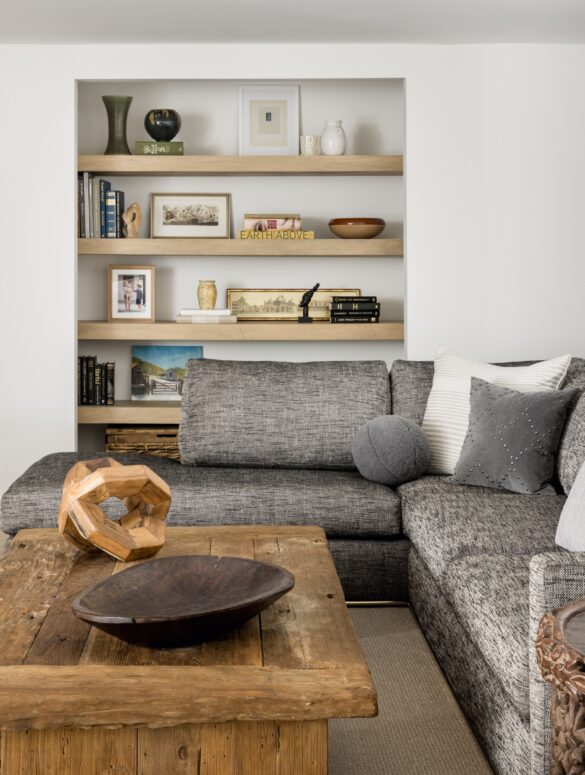 Warm beige, soft oatmeal, mossy greens, and rich stone hues dominate the collection. Items like the Linen Armchair and Reclaimed Wood Coffee Table let textures and materials shine in serene simplicity.